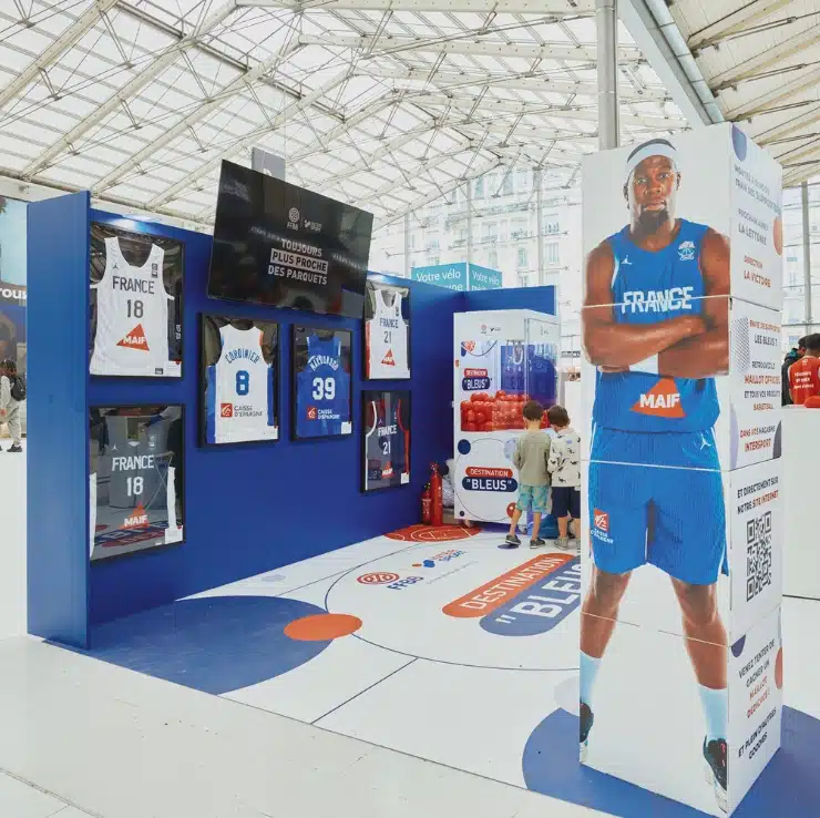 Créer une activation de marque visible et engageante dans un lieu très réglementé. Intersport, en tant que distributeur officiel de l’EuroBasket 2025, souhaitait aller au-delà des points de vente et des stades pour rencontrer un public plus large, dans des lieux de vie et de passage.